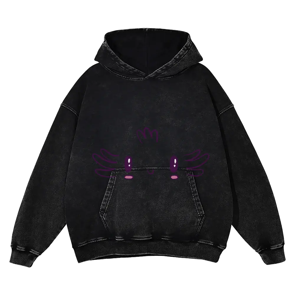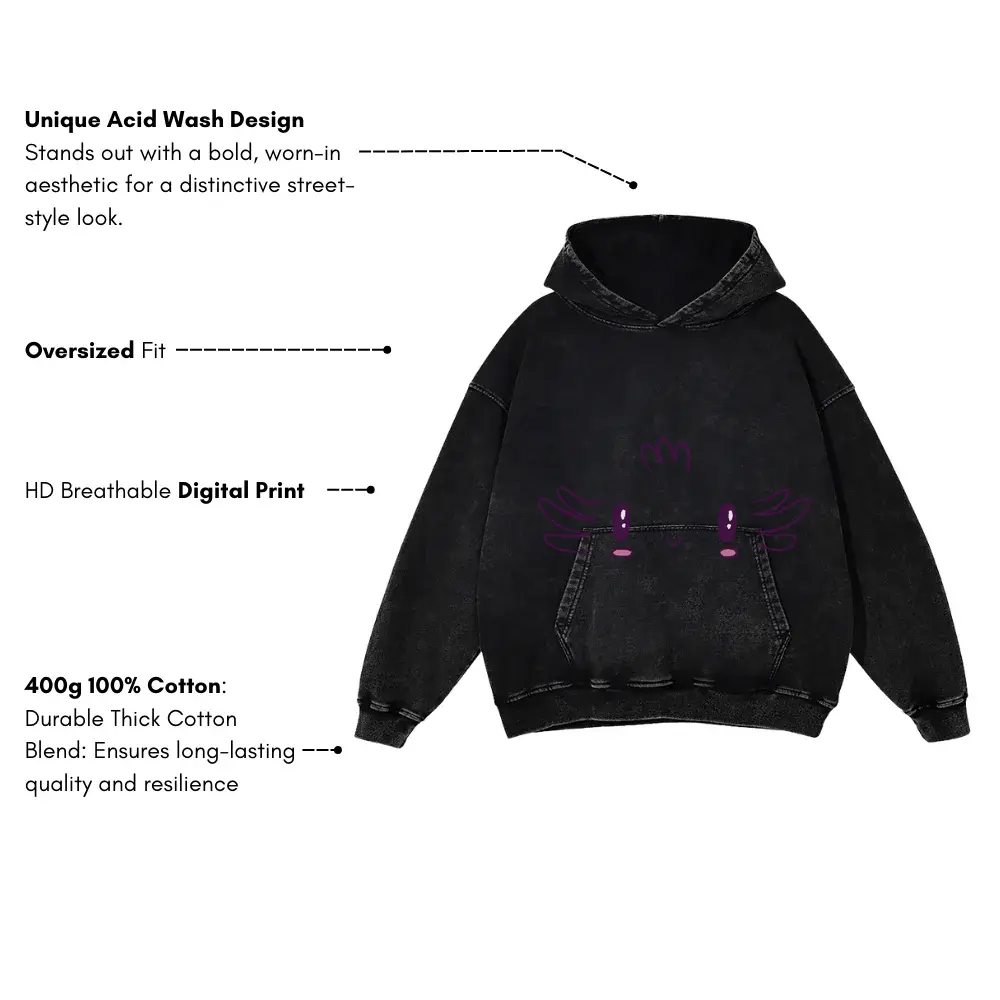 Axolotl Face Acid Wash Oversized Hoodie