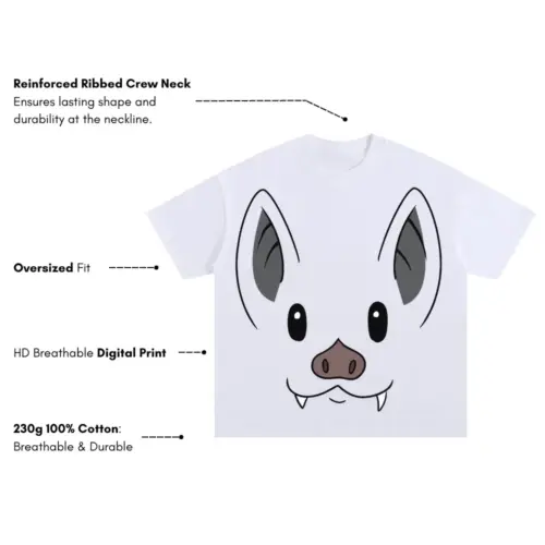Bat Face Oversized White Graphic Tee