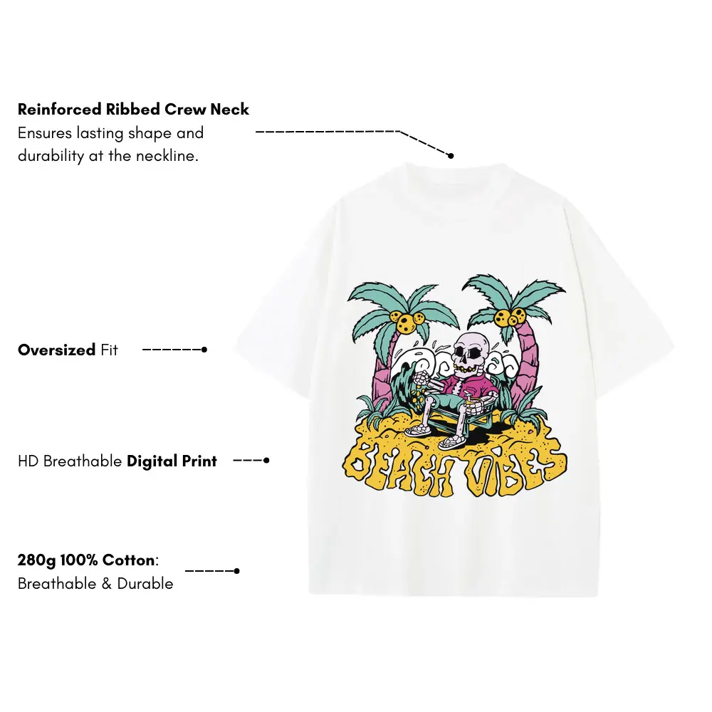Beach Vibes Heavyweight Oversized White Graphic Tee