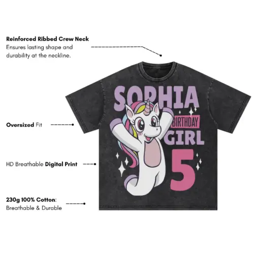 Birthday Unicorn Oversized Acid Wash T-shirt