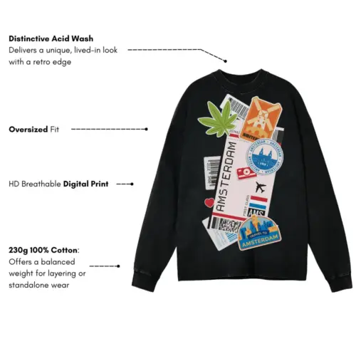 Boarding Pass Phone Case A Acid Wash Oversized Long Sleeve Shirt