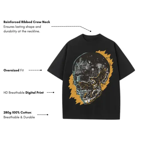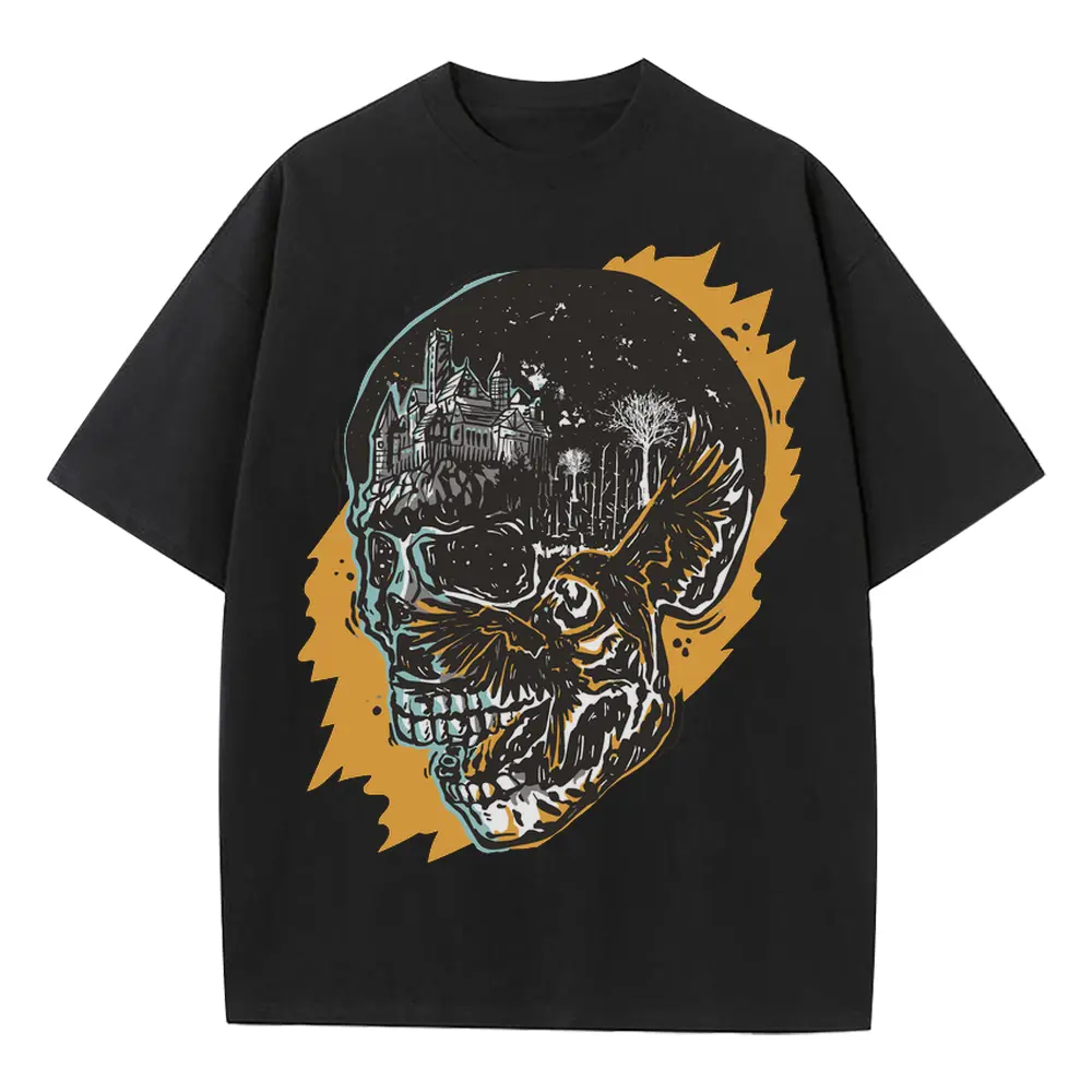 Crow Fight Skull Og Heavyweight Oversized Black Graphic Tee