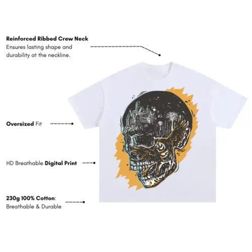 Crow Fight Skull Og Oversized White Graphic Tee