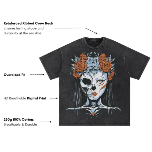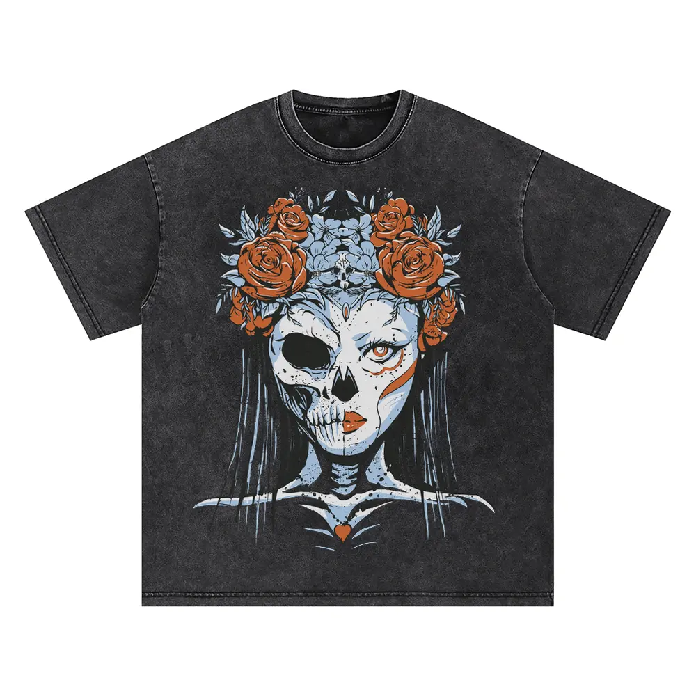 Half Skeleton Bride Oversized Acid Wash T-shirt