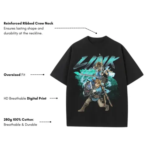 Hero Of Hyrule Heavyweight Oversized Black Graphic Tee