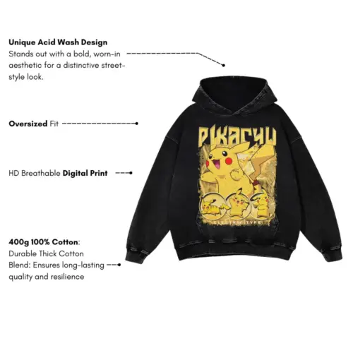 I Choose You Pikachu Acid Wash Oversized Hoodie