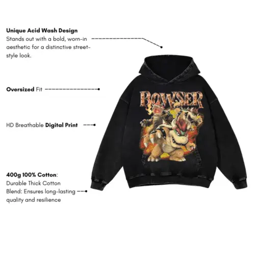King Of The Koopas Acid Wash Oversized Hoodie