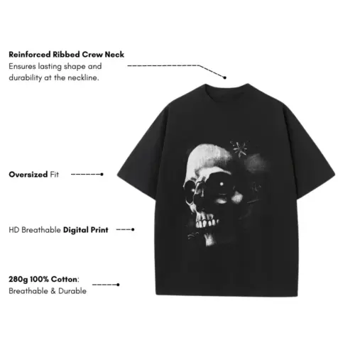 Monochrome Skull Nebula Heavyweight Oversized Black Graphic Tee