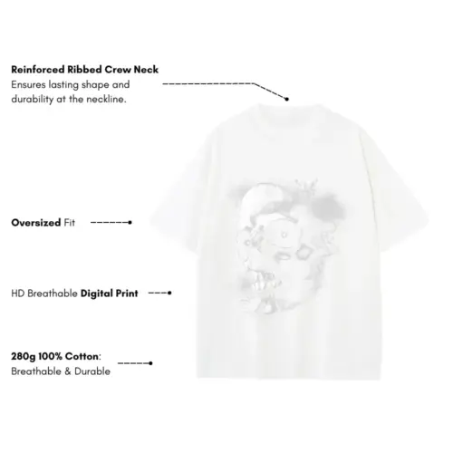 Monochrome Skull Nebula Heavyweight Oversized White Graphic Tee