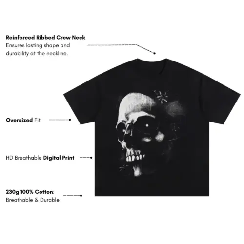 Monochrome Skull Nebula Oversized Black Graphic Tee