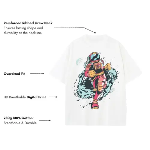 Spaceman Running Heavyweight Oversized White Graphic Tee