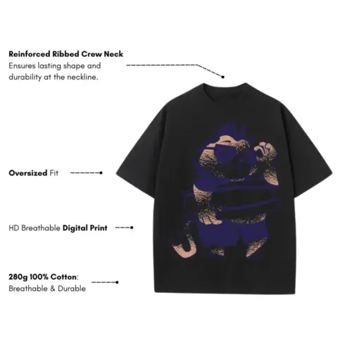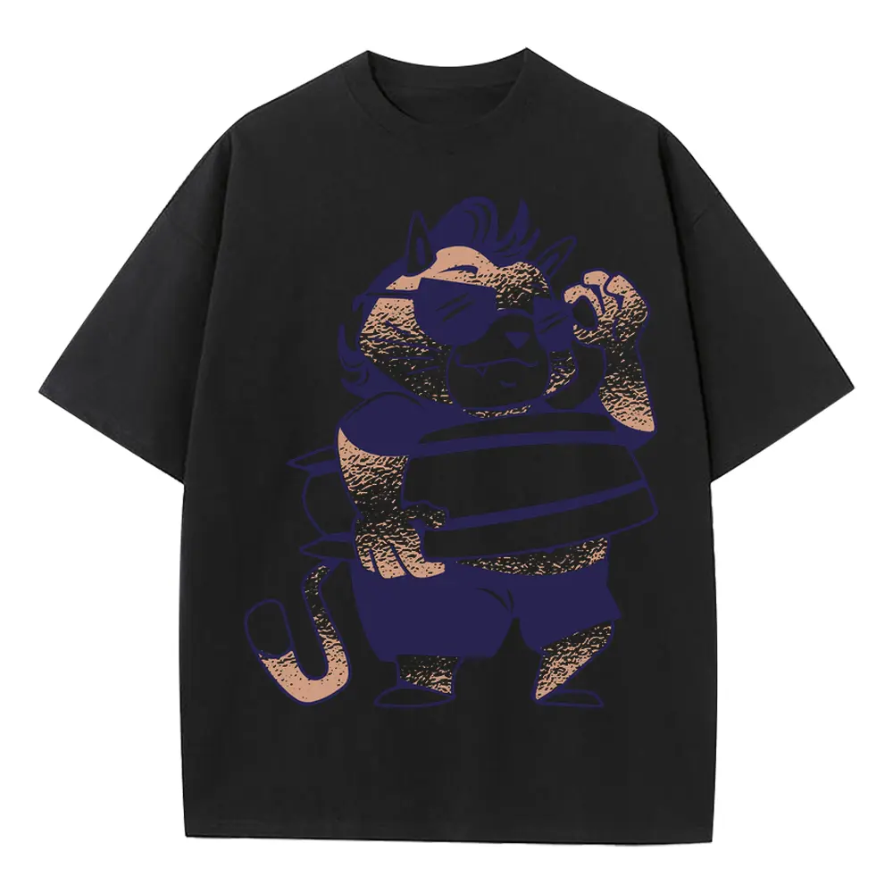 Surf Cat Cool Heavyweight Oversized Black Graphic Tee
