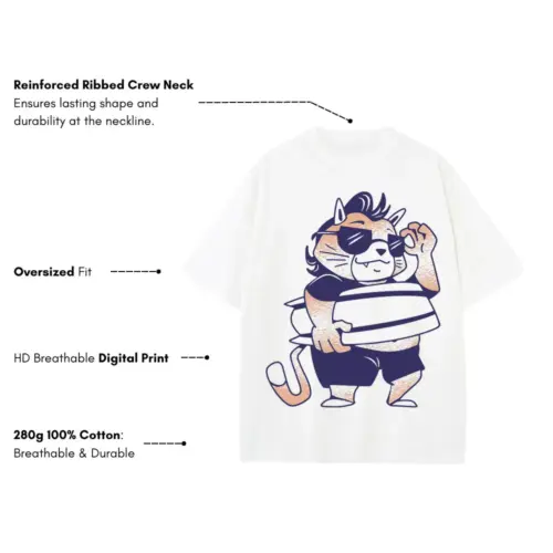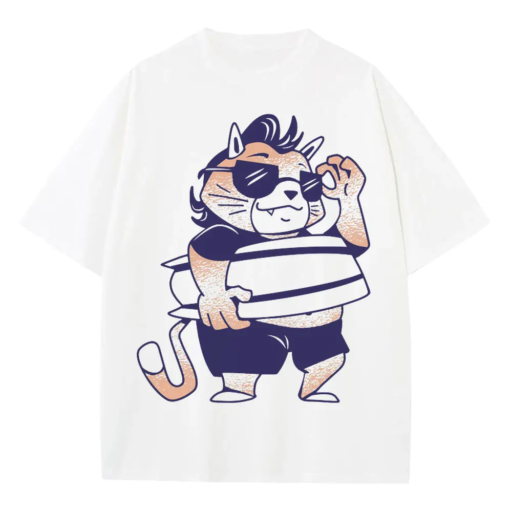 Surf Cat Cool Heavyweight Oversized White Graphic Tee