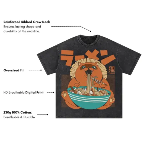 Tanuki Yokai Oversized Acid Wash T-shirt