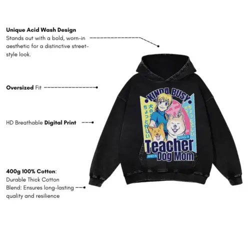 Teacher Dog Mother Acid Wash Oversized Hoodie