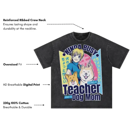 Teacher Dog Mother Oversized Acid Wash T-shirt