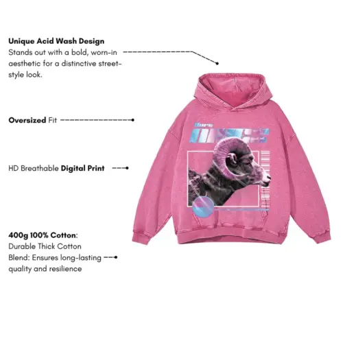 Trap Horoscope Aries Acid Wash Oversized Pink Hoodie