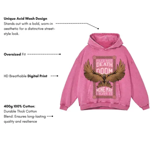 Viking Quote Acid Wash Oversized Pink Hoodie