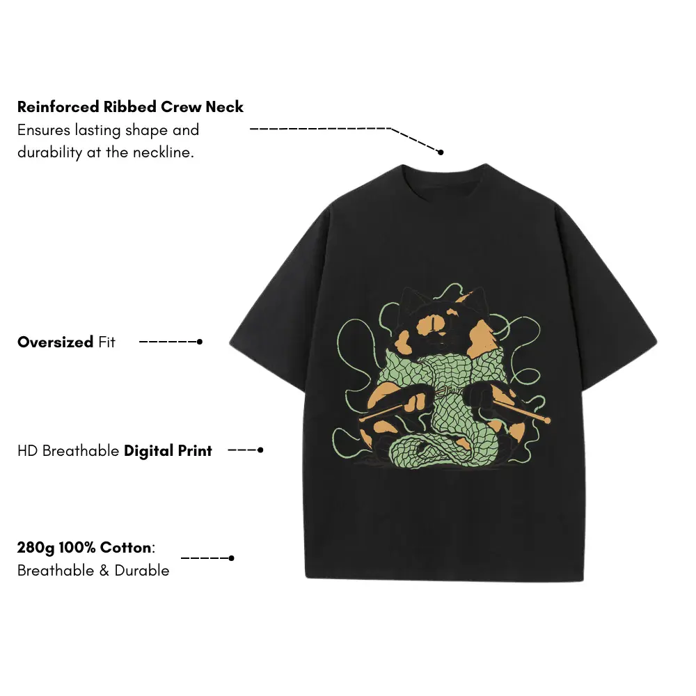 Weavecat Heavyweight Oversized Black Graphic Tee