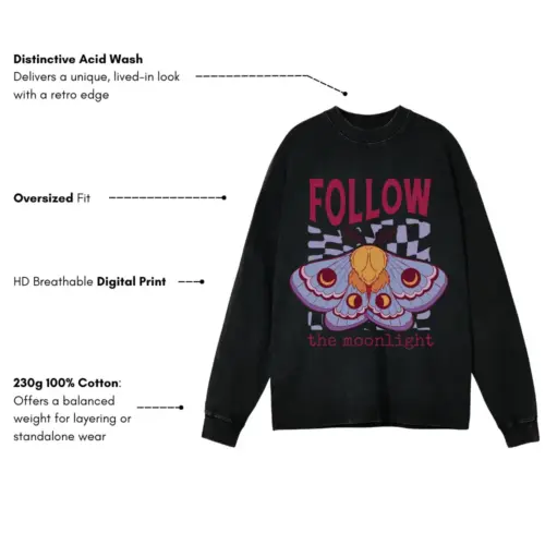 Witchymoonlight Acid Wash Oversized Long Sleeve Shirt
