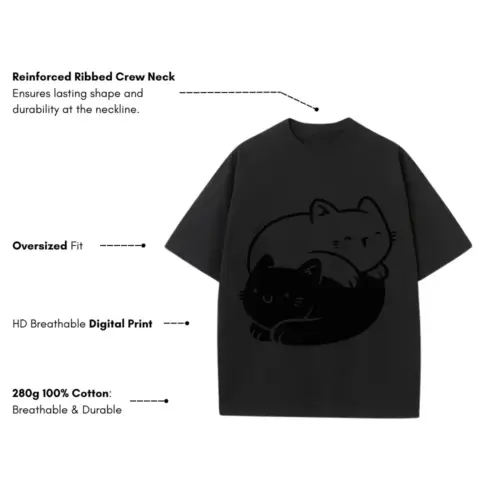 Ying Yang Cats Heavyweight Oversized Black Graphic Tee