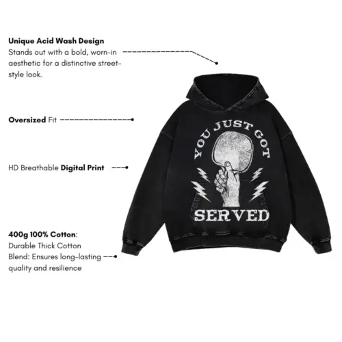 Youjustgotservedpingpong Acid Wash Oversized Hoodie