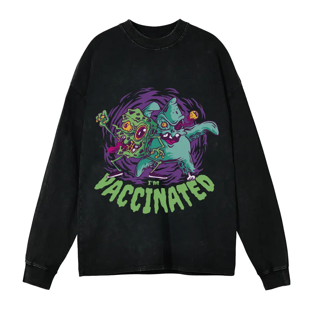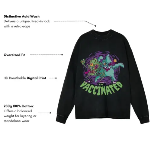 Zombie Characters Parody Acid Wash Oversized Long Sleeve Shirt