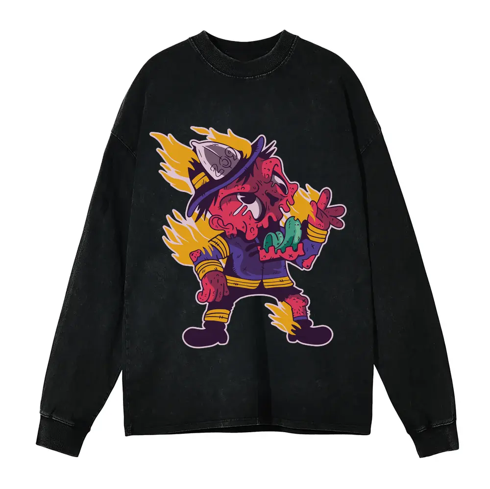 Zombie Firefighter Acid Wash Oversized Long Sleeve Shirt