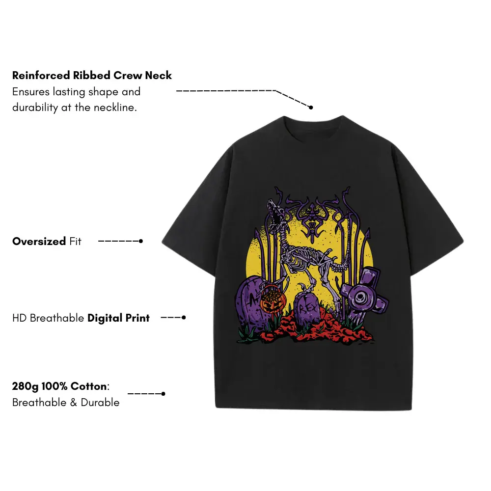 Zombie Trex Heavyweight Oversized Black Graphic Tee